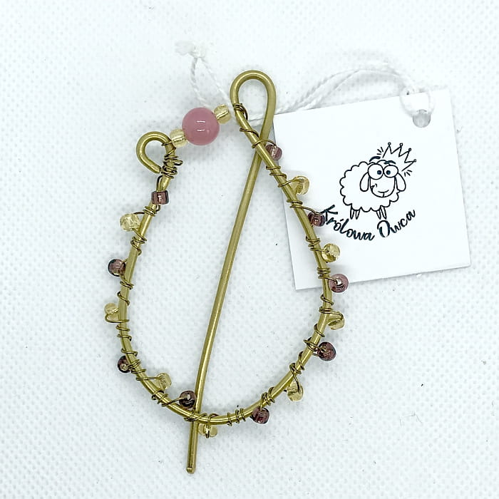 Wykonana ręcznie, dobrze spina i trzyma dzianinę. Może służyć jako ozdoba, zapięcie swetra lub do spięcia szala czy chusty.