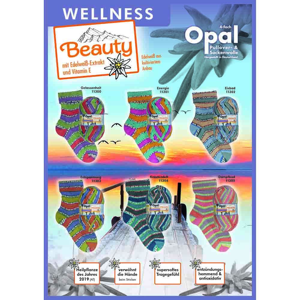 Włóczki Opal z serii Beauty są wzbogacone ekstraktem z szarotki alpejskiej i witaminy E. Niewielki dodatek poliamidu do wełny powoduje, że włóczka jest bardziej wytrzymała, a jednocześnie nie traci swoich właściwości grzewczych. Szarotka alpejska posiada właściwości antybakteryjne i antyoksydacyjne. Witamina E ma równiez działanie antyoksydacyjne. Oba te dodatki sprawiają, że przędza jest miękka i miła w dotyku.